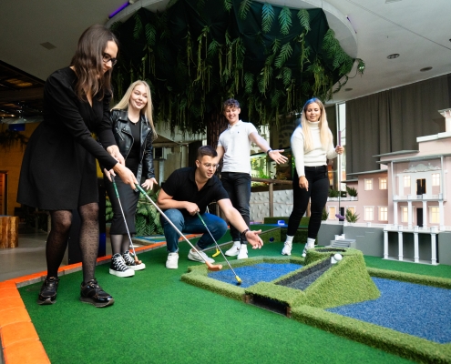 Tule mängi maailma kõige meelelahutuslikumat golfiturniiri. Sind ootab 17 eriefektidega rada, mis viivad seiklema džunglisse ning Eesti vaatamisväärsuste ja legendide vahele. Võidab see, kes toimetab palli kõige vähemate löökidega auku – nagu golfis ikka. Mängi sõprade, kolleegide või lastega – elamusgolf sobib al 7. eluaastast.